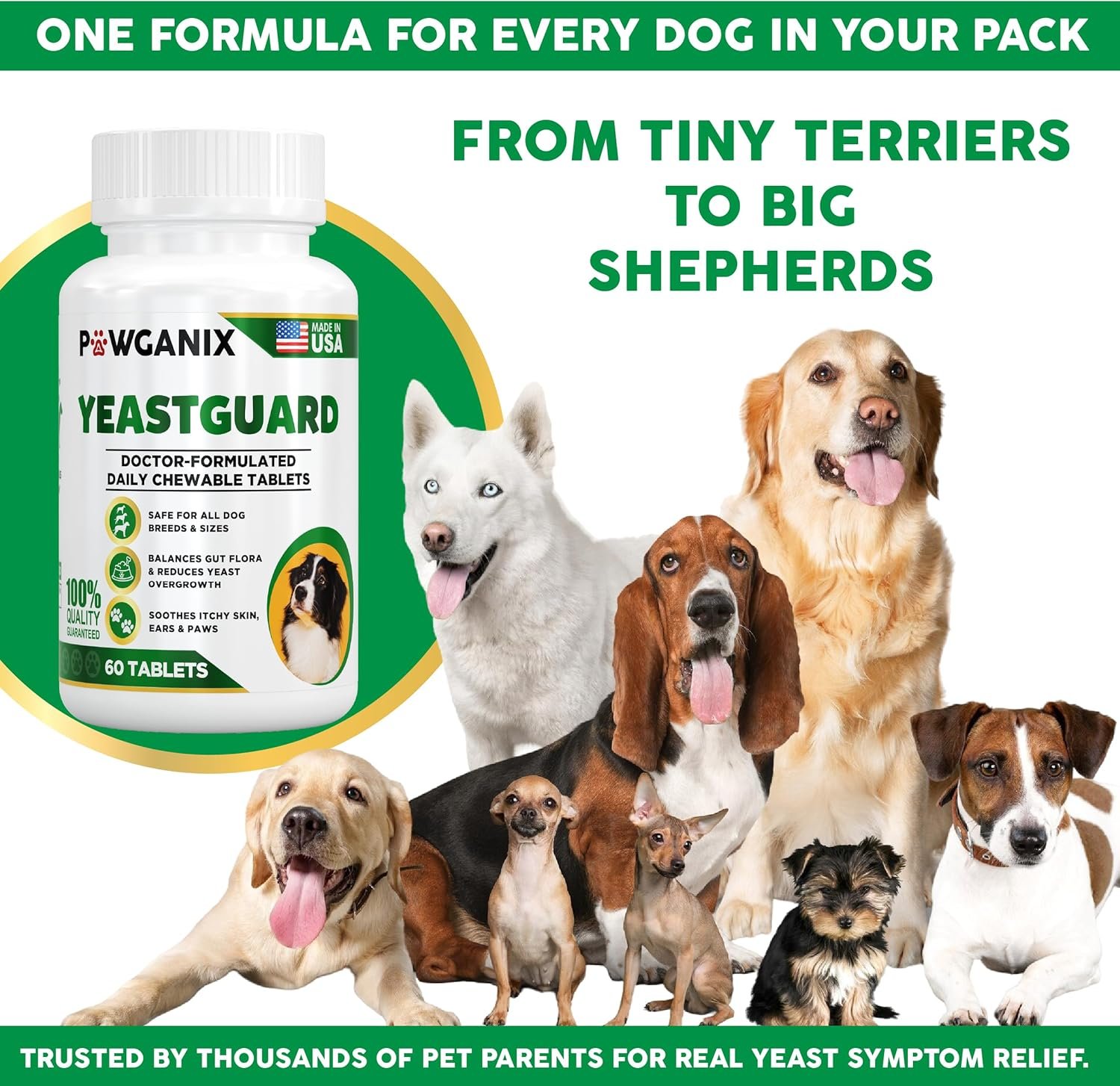 Probiotics for Dogs – Yeast Balance & Gut Health Support – Pawganix YeastGuard (60 Chewable Tablets)