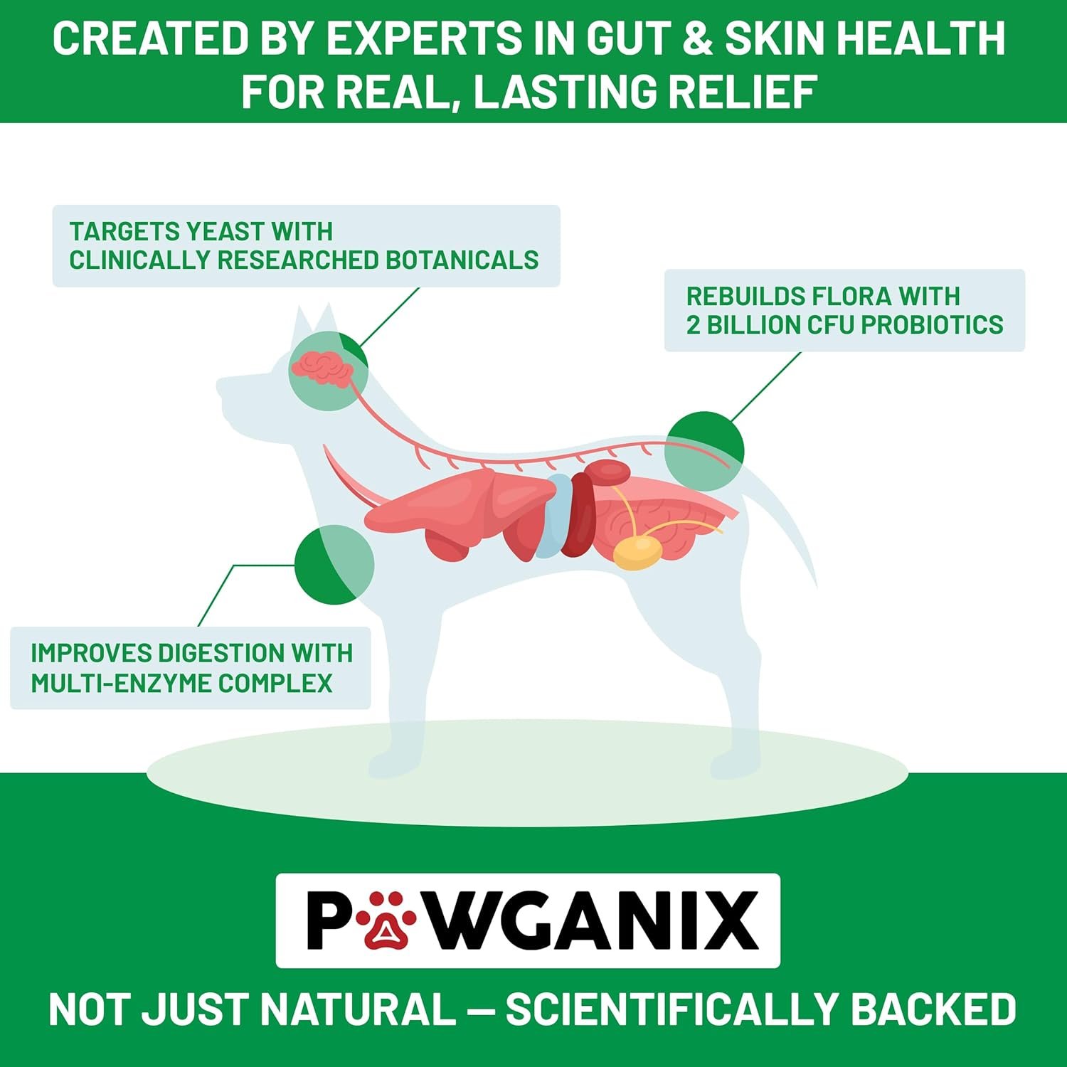 Healthy digestion starts in the gut. YeastGuard’s advanced probiotics support good bacteria and strengthen your dog’s immune system to maintain yeast balance naturally.