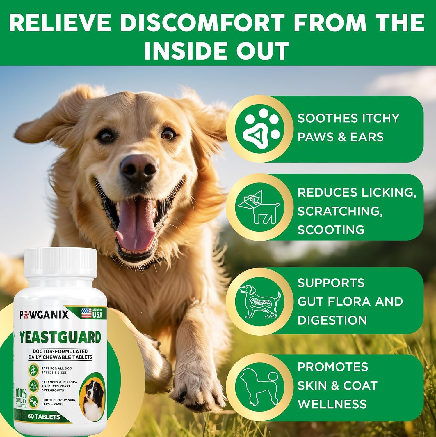My pup used to scratch nonstop, now he sleeps peacefully thanks to YeastGuard